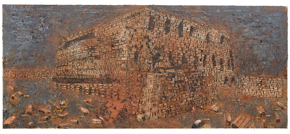 Anselm Kiefer, Nur mit Wind mit Zeit und mit Klang (Die Große Fracht), 2011, Öl, Emulsion, Acryl und Bleiobjekt auf Leinwand