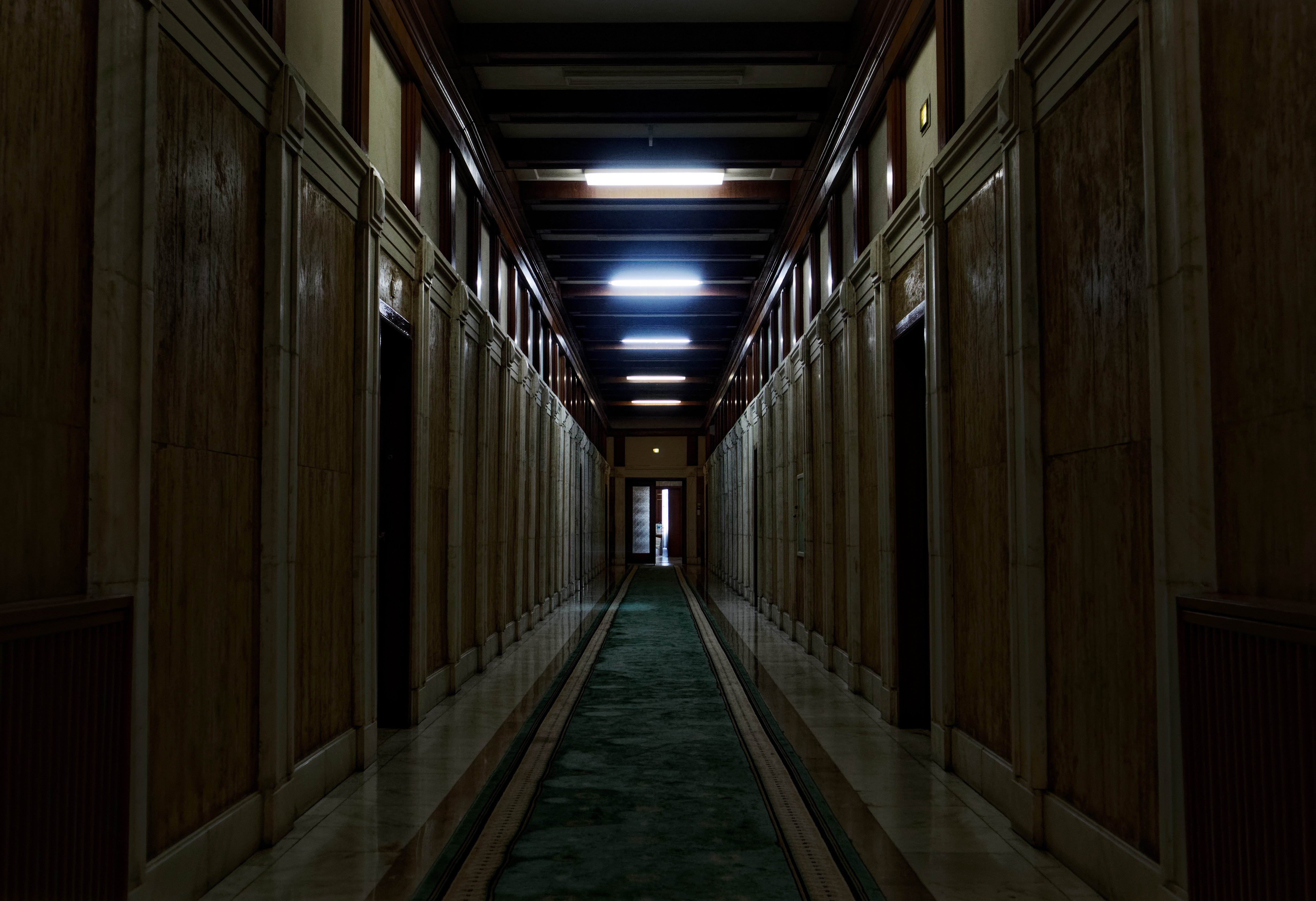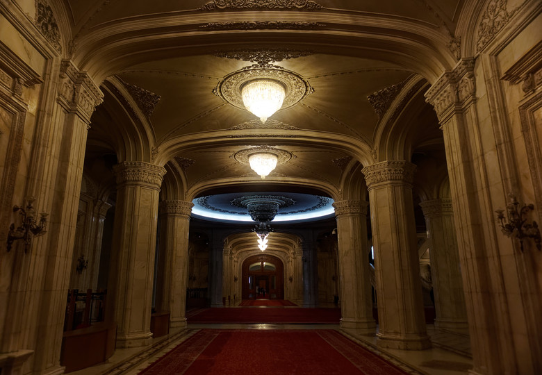 It is the 3rd largest and the heaviest building in the world, and therefore sinks into the ground by 4 cm each year. It has 9 upper floors and 9 floors below ground. Only parts of the first underground floor can be visited, the remaining 8 underground floors are closed to the public. The building features many monumental hallways and ballrooms with designs varying between faux Baroque, neo-historicism and Soviet monumentalism.