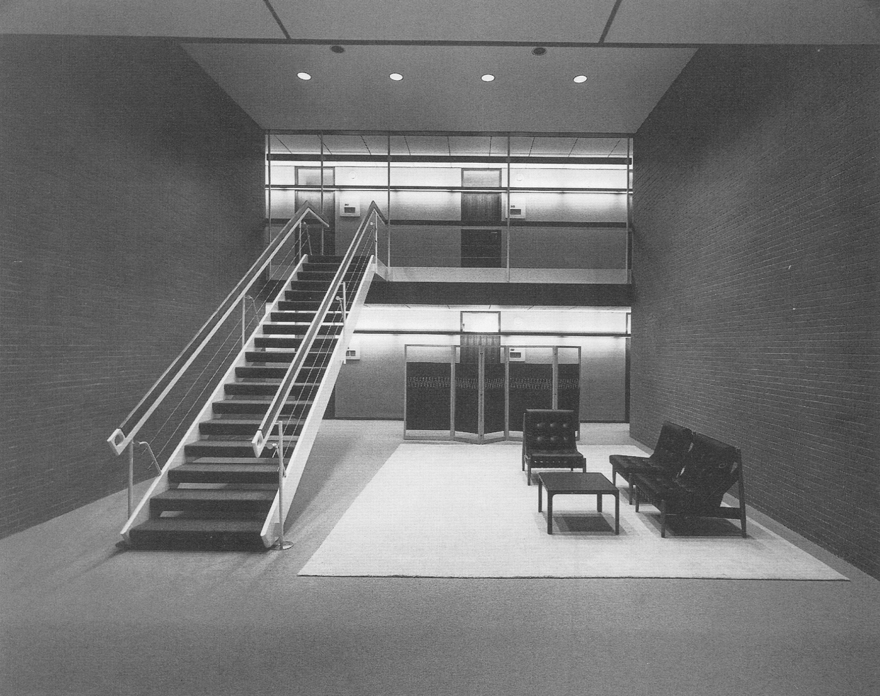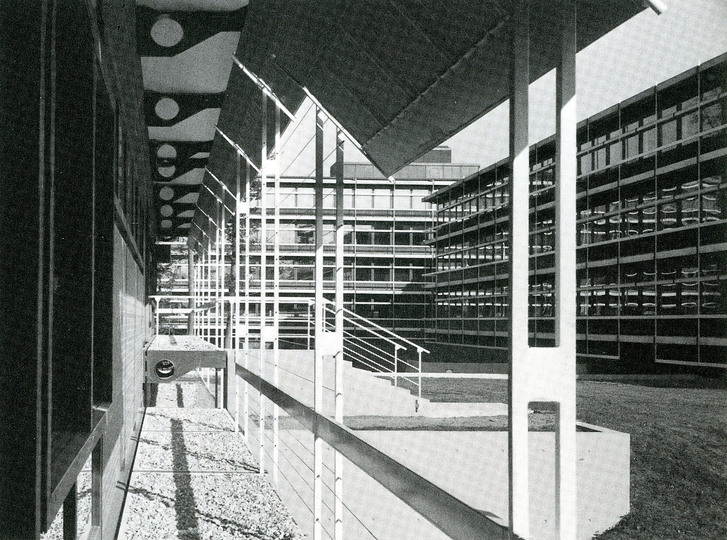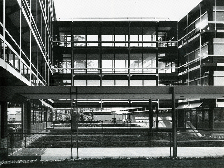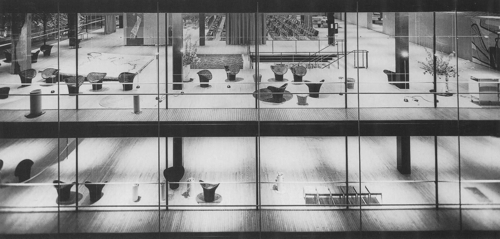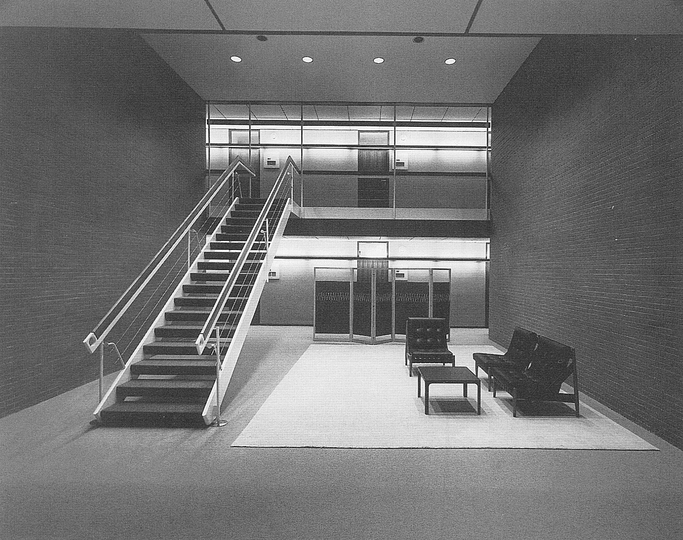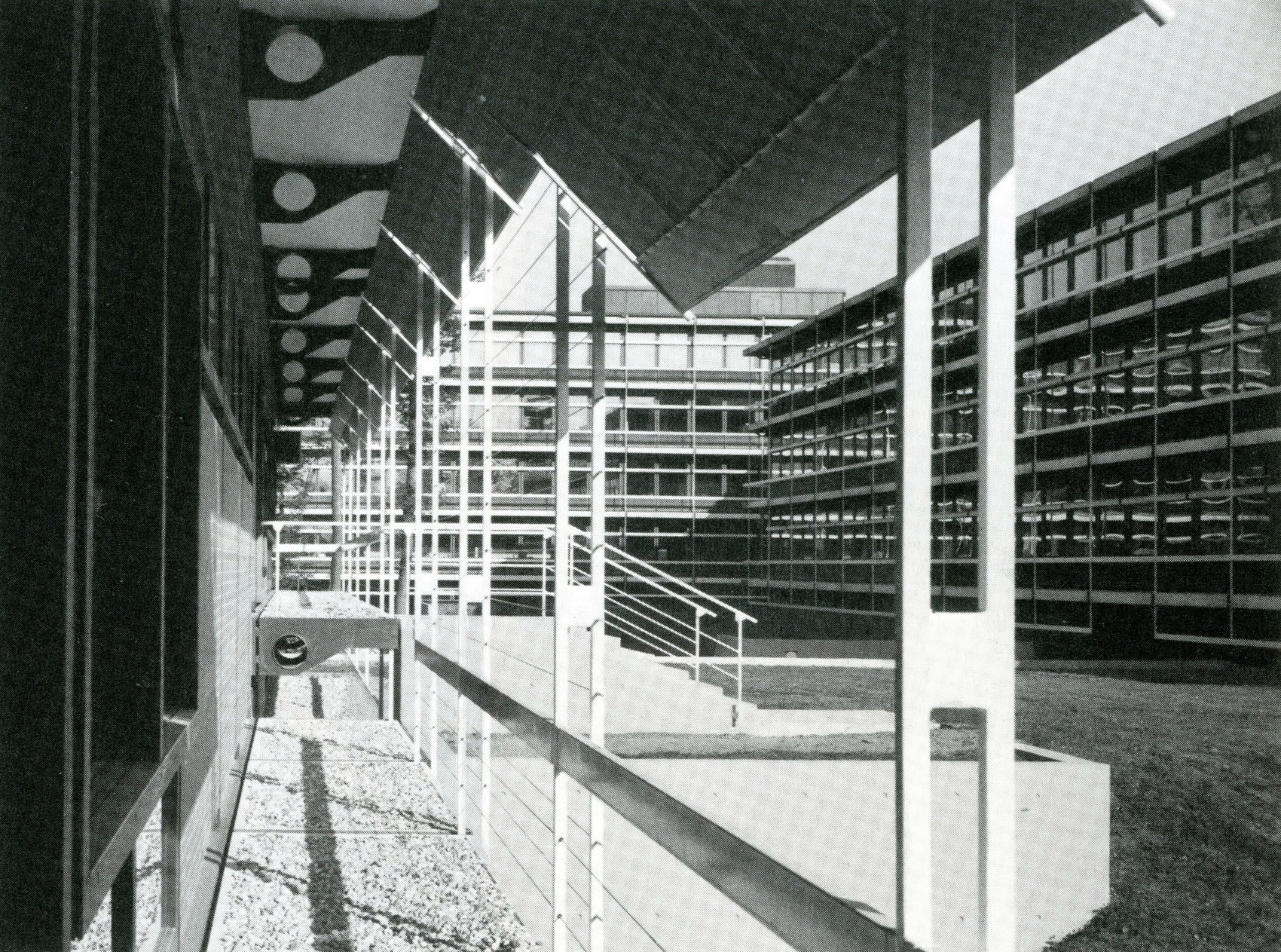 Eiermann´s special mixture of rational, modernist and understated with partly American, partly Scandinavian influences fitted the bill, and he was entrusted to design the buildings to represent this new Germany with buildings such as the West German pavilion at the Brussels World Exhibition (with Sep Ruf, 1958), the West German embassy in Washington, D.C. (1958–64), the IBM-Germany Headquarters in Stuttgart (1967), the Olivetti corporate center in Frankfurt am Main, and the former high-rise office building for Members of the German Bundestag in Bonn.