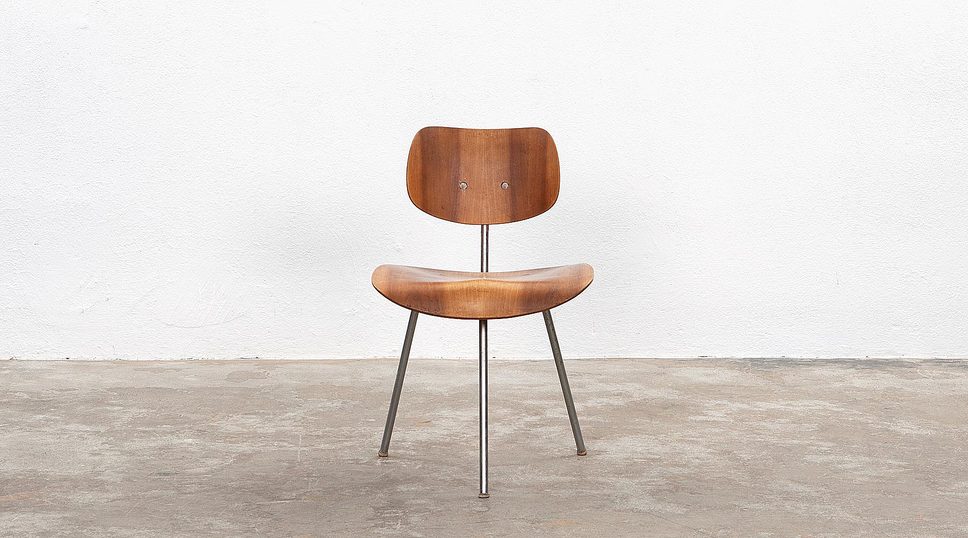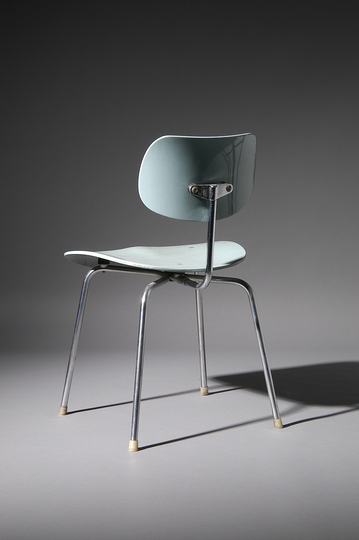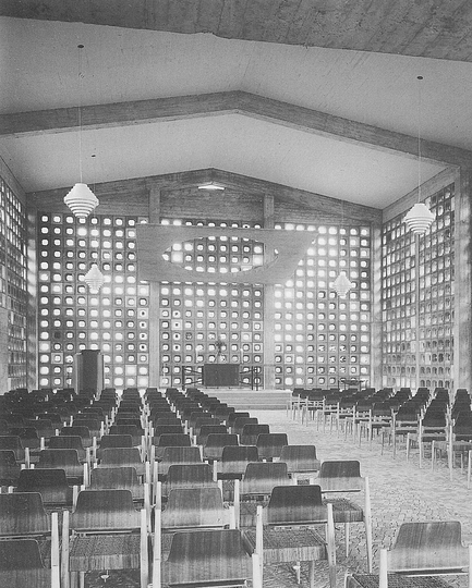 His most iconic work is the Kaiser Wilhelm Memorial Church (1956–63), a symbol of postwar Berlin. A Romanesque building constructed in 1891 and bombed in 1945 by Allied Forces was incorporated by Eiermann into a modernist polygonal church. Eiermann studied at Berlin Technical University under Hans Poelzig, an early modernist whose "Materialstil" focused on the properties of materials. Eiermann started working in the building department of the Karstadt department store. From 1930 he practiced architecture in Berlin. From 1947, he worked in Karlsruhe, where he also served on the faculty of the university. Being architect as well as designer, Eiermann also created iconic furniture designs such as the SE 18 folding chair and the E 10 rattan lounge chair.